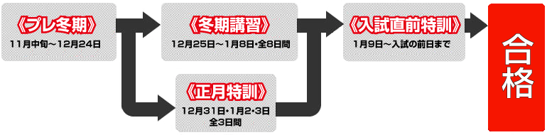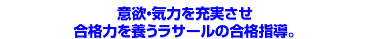 入試の前日まで白熱した指導が展開されるラサールの合格指導 迫り来る高校入試。落ち着いて受験勉強に打ち込めるのは、冬休みが明ける1月上旬までのあとわずか2ヶ月余り。目前に迫ってきた入試で成功を勝ち取るためには、入試学力の年内完成が欠かせません。ラサールでは、在室生全員がパーフェクト合格、入試大成功を勝ち取ることができるよう、期末試験明けの11月下旬からプレ冬期講習をスタートし、冬期講習で培う入試学力を、一歩早くこのプレ冬期講習で完成、冬期講習ではさらに一層レベルアップした入試問題にアタックすることで入試学力を大きくアップできるよう、期末明けの11月下旬から“プレ冬期講習⇒冬期講習⇒正月特訓⇒入試直前特訓”をスタートし、合格への全てを徹底指導。入試大成功をお約束します。