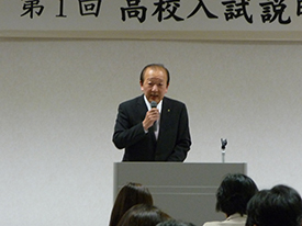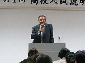 今年度のテーマは「よりハイレベルな戦いとなった2015年の入試の結果2016年入試の展望」についてです。参加いただいたご父母の皆様方は例年にも増し教務部長の説明を真剣な表情でお聞きになっていました。